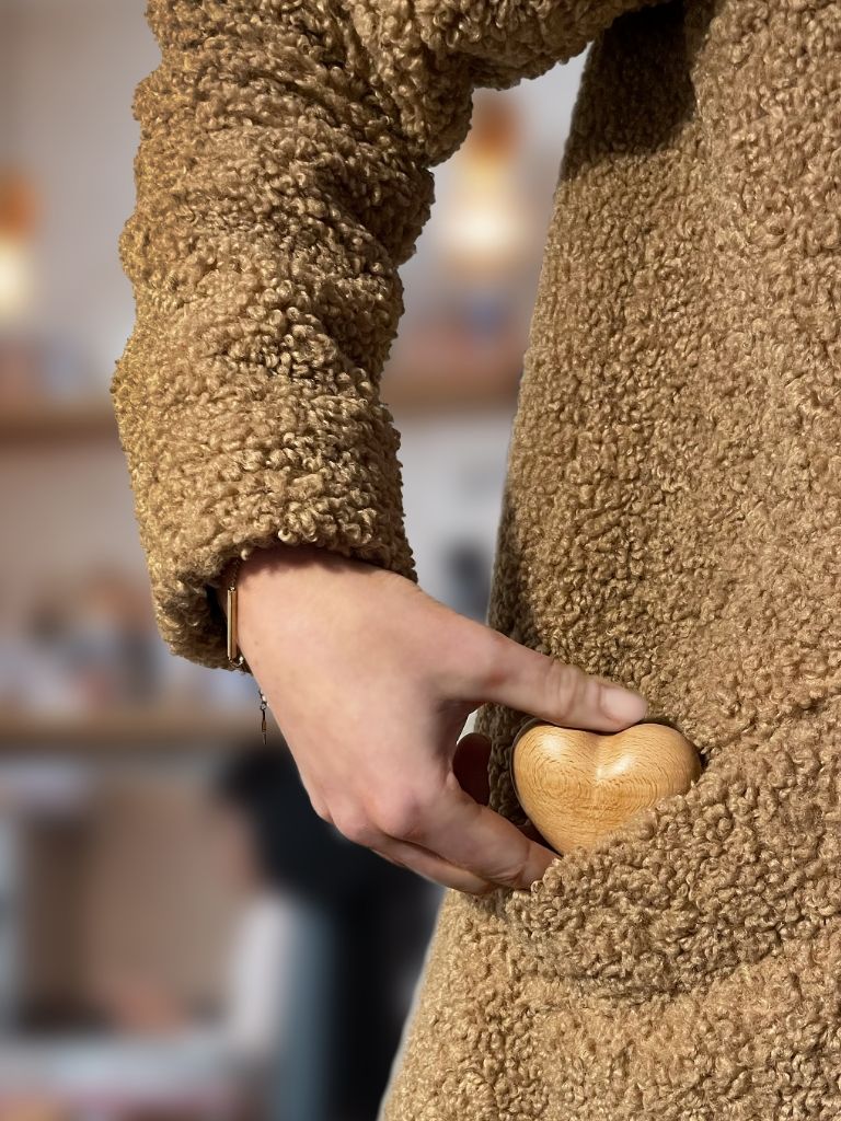Jederzeit, wenn dir nach einem Moment der Ruhe ist, holst du den Handschmeichler hervor und du spürst das beruhigende, glatte Waldholz. Das Holzherz ist wie ein Schutzengel, der dich stets begleitet.